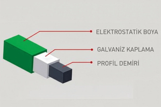 | Kaplama | Sadece galvaniz ve galvaniz üzeri elektrostatik boya | |||